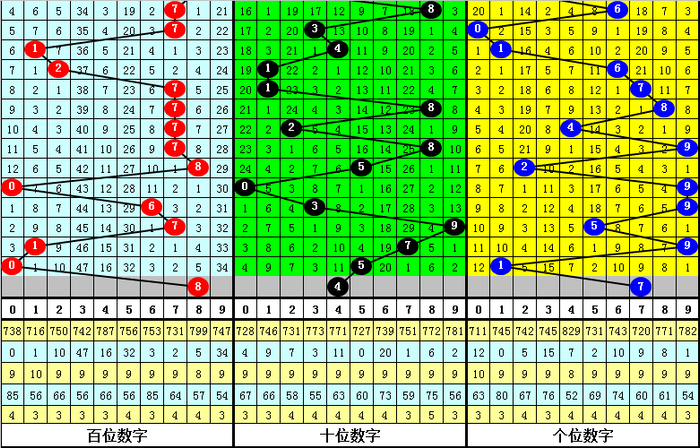 另外,在历史同时开奖中,号码0-9折柳出现: