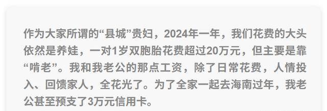前两天我看到一份来自县城消耗者的年度账单:家庭旅行花了3万,养娃支出20万,别传这还只是“基本操作”。