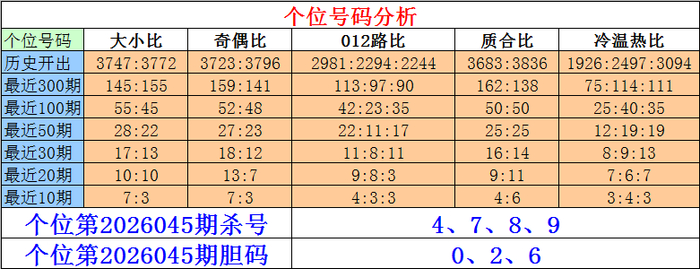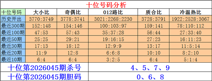 摆设三十位第2026045期杀号:4、5、7、9