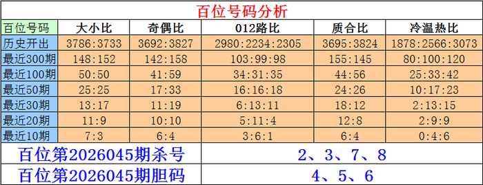 摆设三百位第2026045期杀号:2、3、7、8