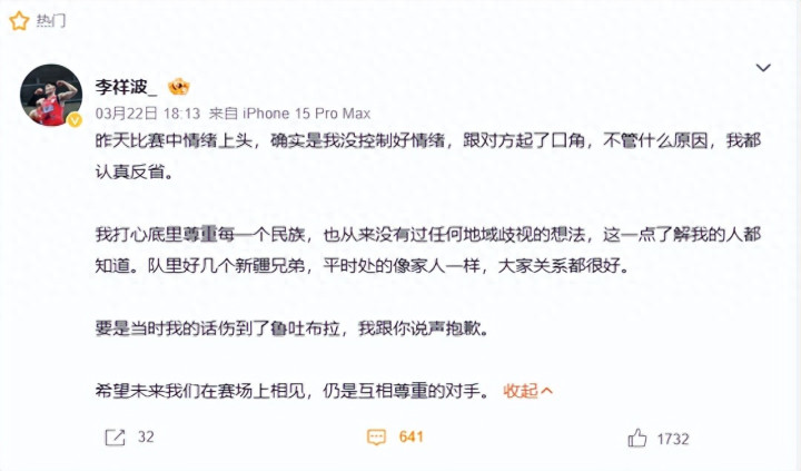 说一千谈一万,李祥波万万不应该在比赛竣事的时候,还来那么一句。