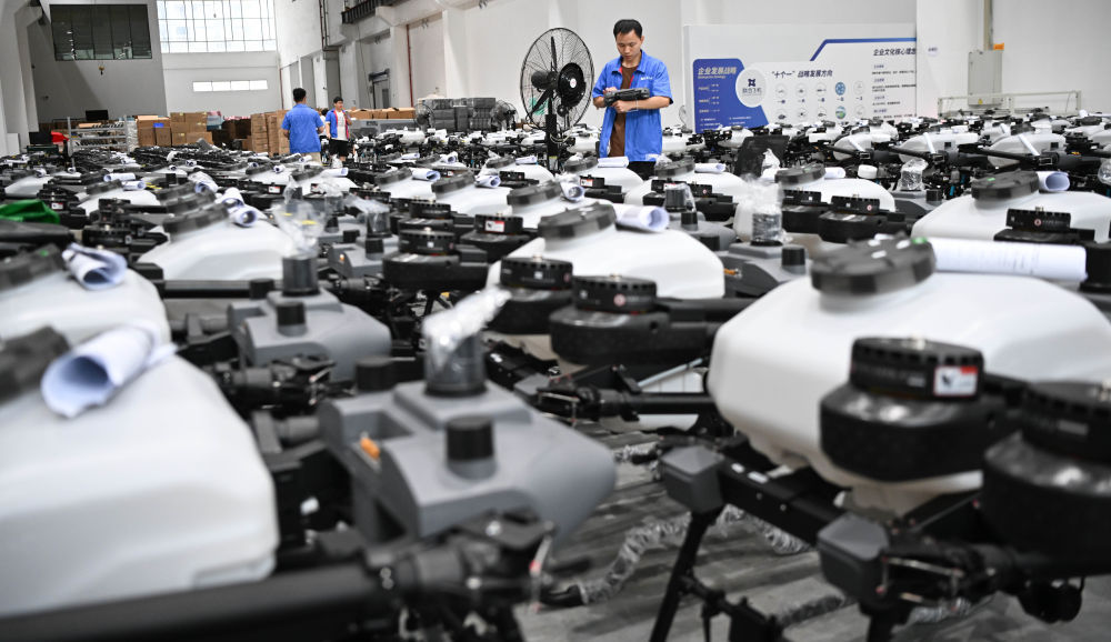 2025年6月26日,责任主谈主员在协调飞机集团深圳基地植保无东谈主机仓库内巡查。新华社记者 邓华 摄