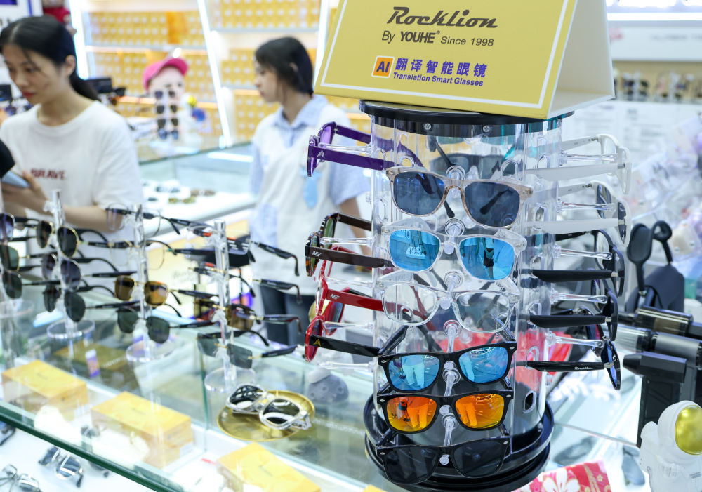2025年7月22日,抢庄牛牛app深圳华强北一家商户的柜台上摆放着不同技俩的智能眼镜。新华社记者 毛念念倩 摄