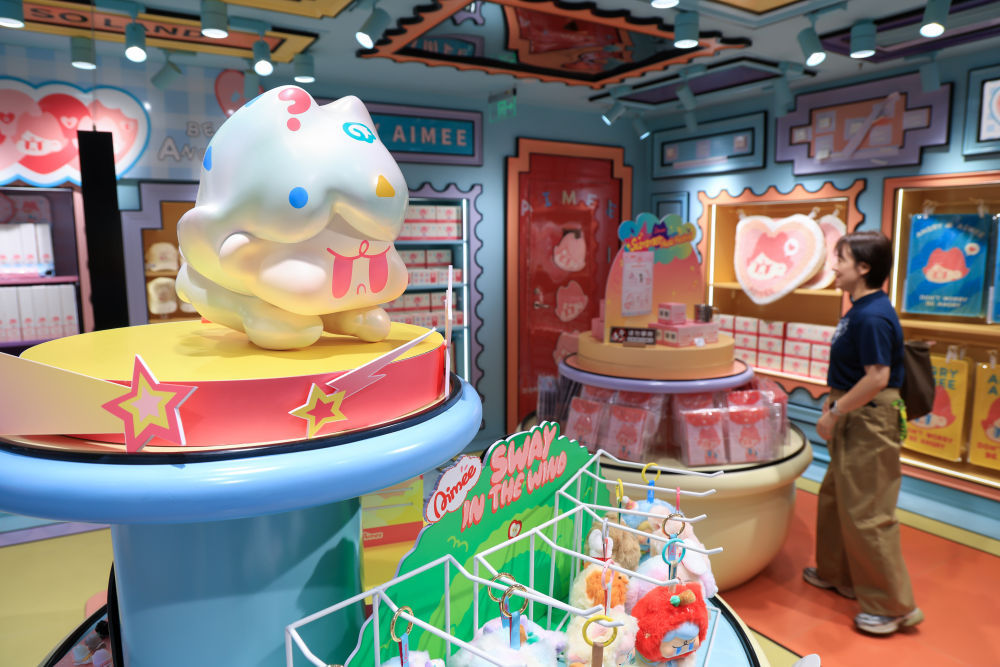 2025年10月28日,在广州的名创优品MINISO LAND(城市乐土店),主顾选购原创IP潮玩居品。新华社记者 毛念念倩 摄