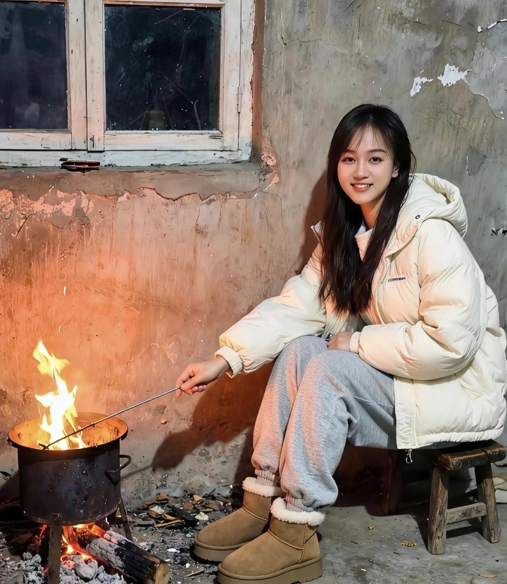 衣着羽绒服烤火作念饭,是冬天里最幸福的炊火气了。
