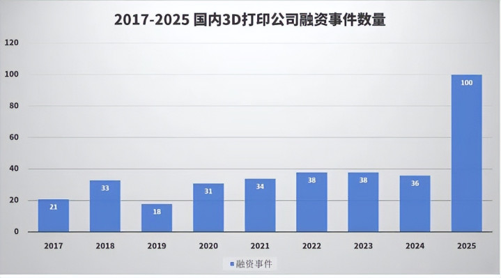南极熊数据统计,2025年有81家3D打印公司揣摸赢得了100笔融资,数目和融资额都远超往年。其中不仅勾引了深创投、IDG等财务投资机构加码,更让大疆、腾讯、好意思团这么的互联网和硬件巨头亲身下场布局。