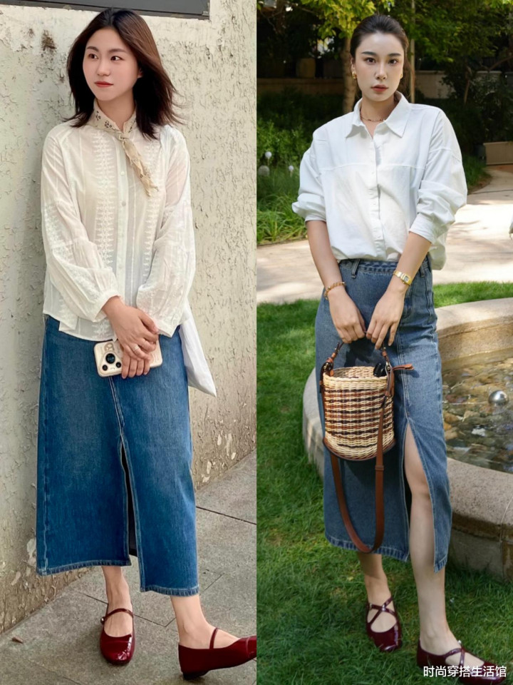 牛仔裙是春天出镜率最高同期最娴雅百搭的搭配,穿在身上不仅不错打造出崭新甜好意思的先锋范,同期还能穿出优雅减龄的后果,然而咱们在挑选牛仔裙的期间要留心版型的礼聘,毕竟礼聘太紧身的神气会败露躯壳过失,礼聘太宽松的版型又会横向拉宽躯壳,尽量挑选称身的版型,搭配上低跟玛丽珍鞋,保证让你的魔力仁和质愈加凸起。