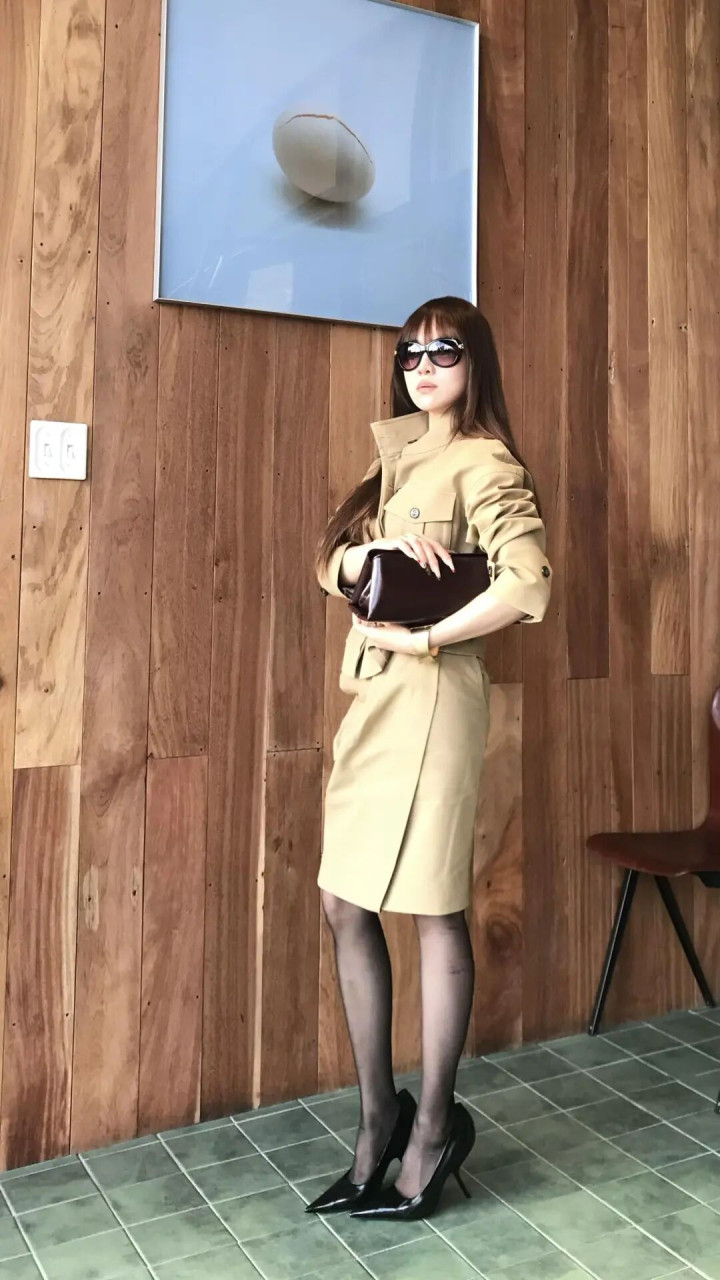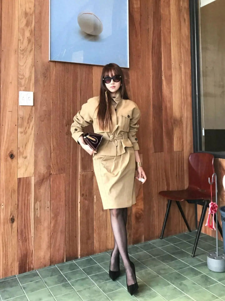 抢庄牛牛官网 卡其色短风衣+半裙, 又好意思又飒的姐感穿搭