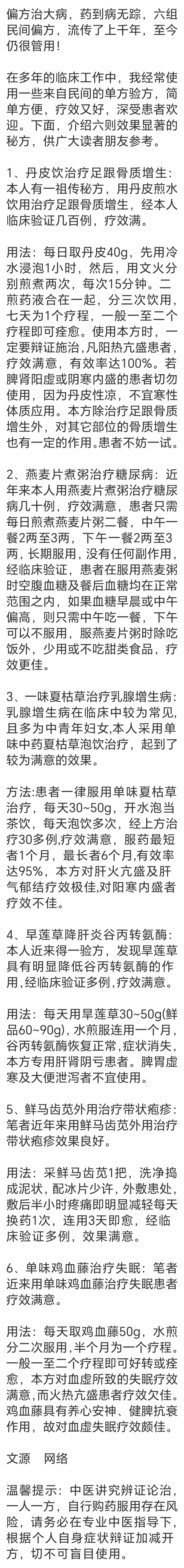 在漫长的岁月里,民间流传着很多简短实用的单方验方,它们取材普通、操作方便,历经千年仍是在防守着东说念主们的健康,是祖辈们留给咱们的宝贵金钱。这些方子进程无数临床考证,疗效真是,深受全球相信。