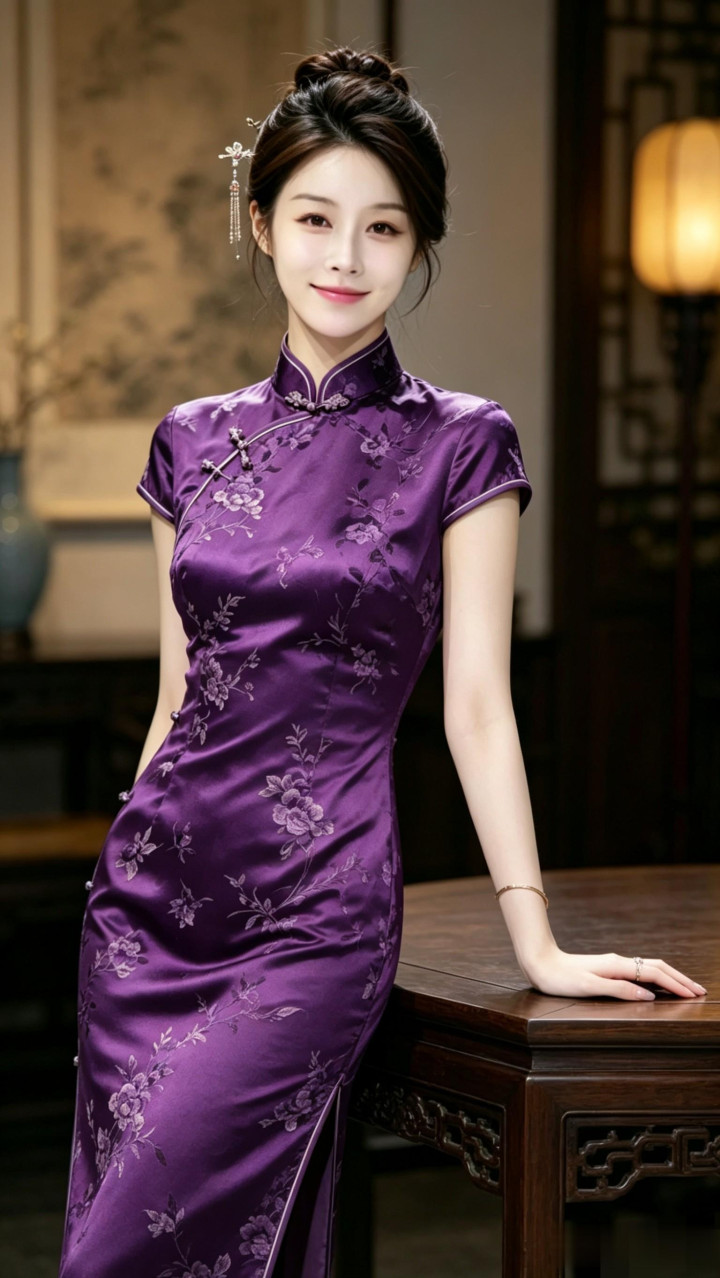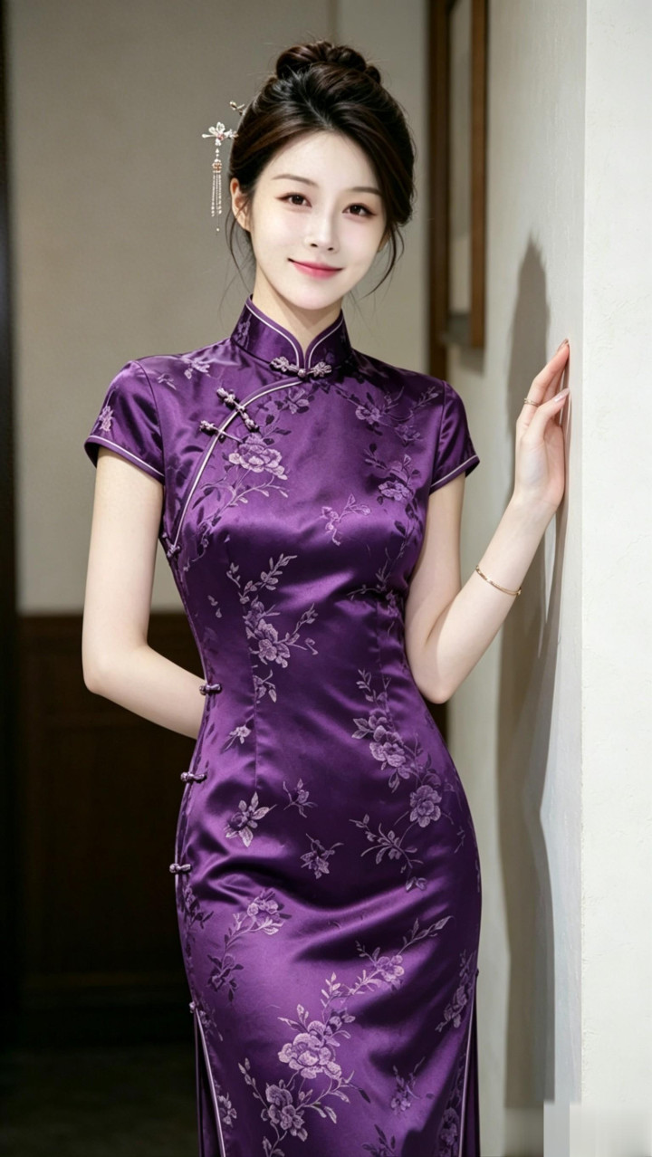 抢庄牛牛app 模特菲菲, 紫色旗袍写照, 躯壳弧线圆善袒露! 颜值清纯可人!