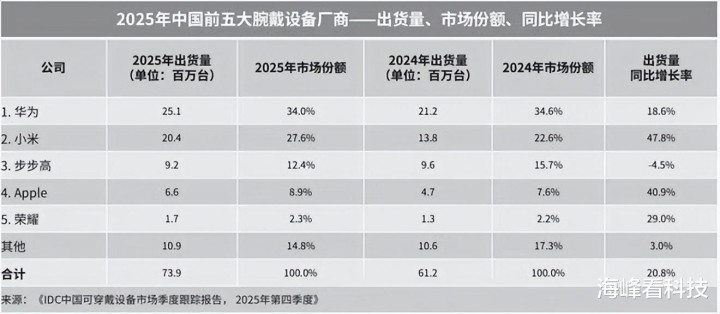 近日,IDC发布了《中国可一稔配置市集季度追踪叙述》,2025年中国腕戴配置市集出货量为7390万台,同比增长20.8%。