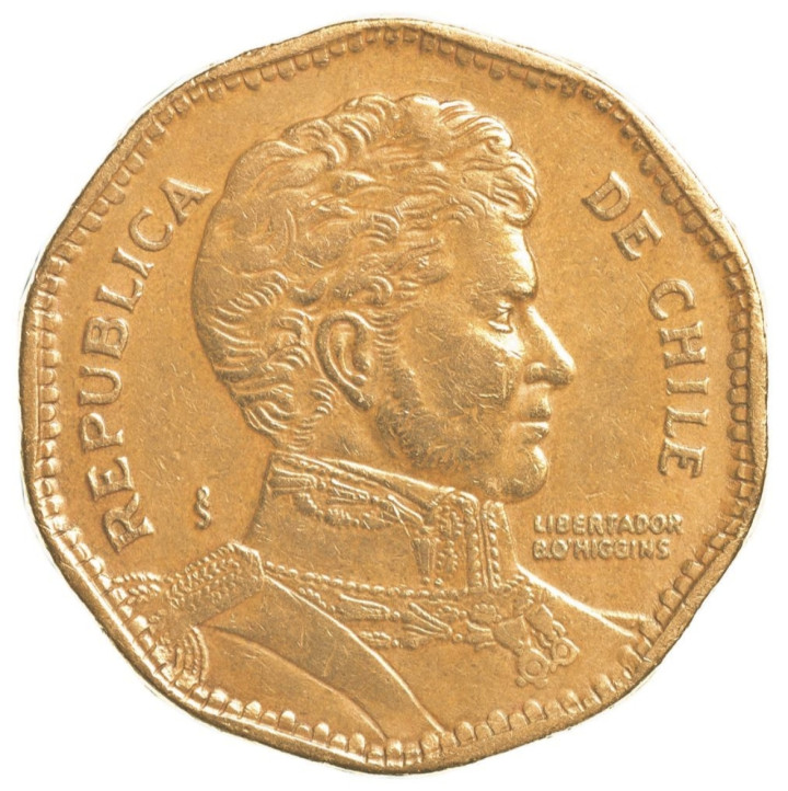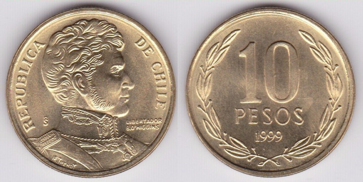 3、圆形洞开硬币(10比索)上的贝尔纳多·奥希金斯·里克尔梅