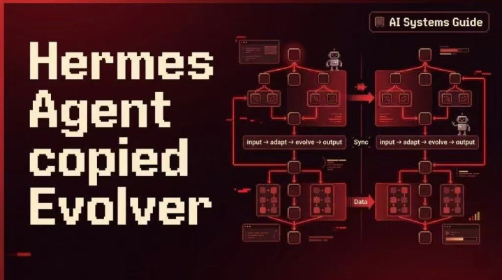 配图是两个项打算架构对比,标题写得很平直:HermesAgentcopiedEvolver。