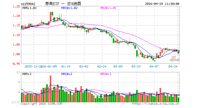 牛牛 券商ETF银华(159842)跌1.08%, 半日成交额1.77亿元